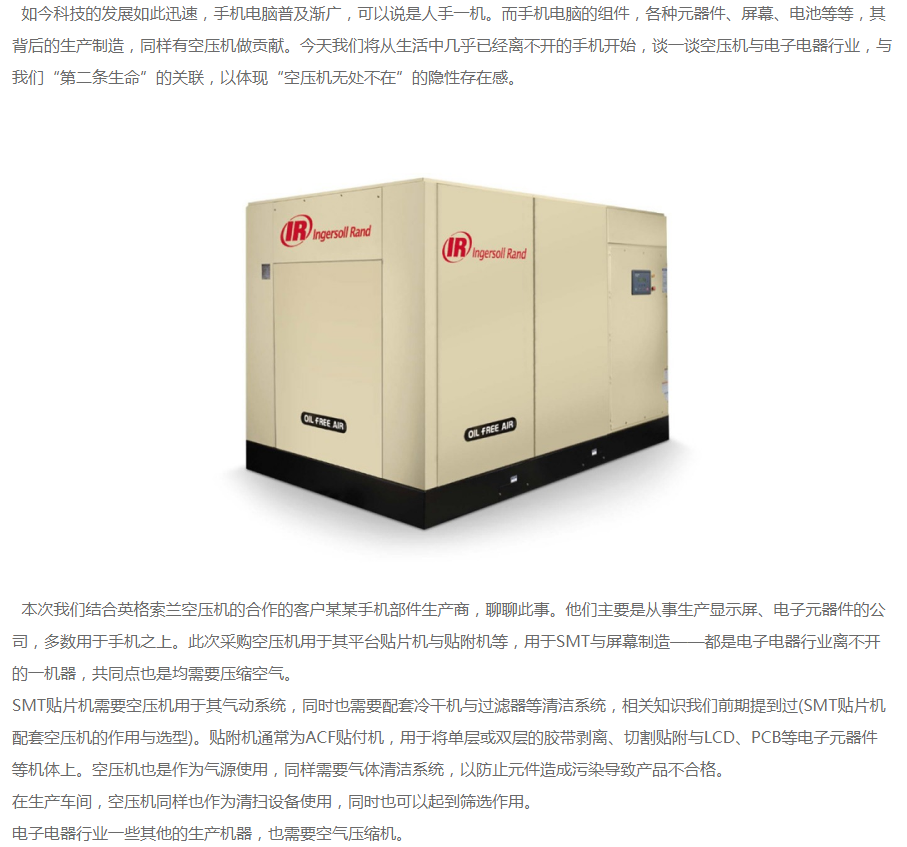 濟南銳博特機械設備有限公司是英格索蘭空氣壓縮機的授權代理商,代理銷售美國英格索蘭全系列的空壓機及后續(xù)處理設備。公司自成立以來,經(jīng)過公司全體同仁不斷努力,開拓創(chuàng)新,以優(yōu)良的技術、完善的售后服務,使得公司贏得了一個又一個的誠心客戶。我公司擁有多名專業(yè)的銷售及售后服務人員,為客戶提供空壓系統(tǒng)的售前、售中及售后的全方位優(yōu)質服務。另公司有多名具有英格索蘭壓縮機授權服務證書的服務工程師,能維修和保養(yǎng)國內(nèi)外各種品牌空壓機,公司各種國內(nèi)外品牌空壓機配件庫存齊全。