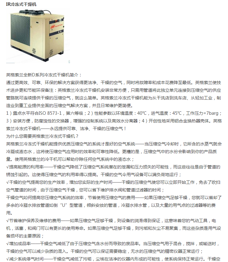 •        濟(jì)南銳博特機(jī)械設(shè)備有限公司是英格索蘭空氣壓縮機(jī)的授權(quán)代理商,代理銷售美國(guó)英格索蘭全系列的空壓機(jī)及后續(xù)處理設(shè)備。公司自成立以來(lái),經(jīng)過(guò)公司全體同仁不斷努力,開(kāi)拓創(chuàng)新,以優(yōu)良的技術(shù)、完善的售后服務(wù),使得公司贏得了一個(gè)又一個(gè)的誠(chéng)心客戶。我公司擁有多名專業(yè)的銷售及售后服務(wù)人員,為客戶提供空壓系統(tǒng)的售前、售中及售后的全方位優(yōu)質(zhì)服務(wù)。另公司有多名具有英格索蘭壓縮機(jī)授權(quán)服務(wù)證書(shū)的服務(wù)工程師,能維修和保養(yǎng)國(guó)內(nèi)外各種品牌空壓機(jī),公司各種國(guó)內(nèi)外品牌空壓機(jī)配件庫(kù)存齊全。
